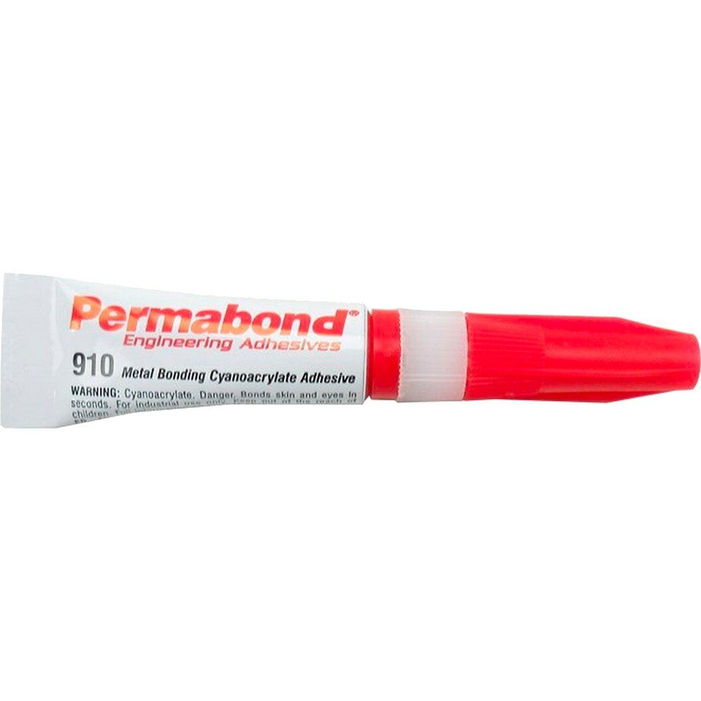 Permabond industrial cyanoacrylate adhesive. Three gram tube used for metal bonding and has low viscosity. It is fast curing and easy to use. Fixture in 15 seconds and full cure time is four hours. Shear strength is 3,000 psi.