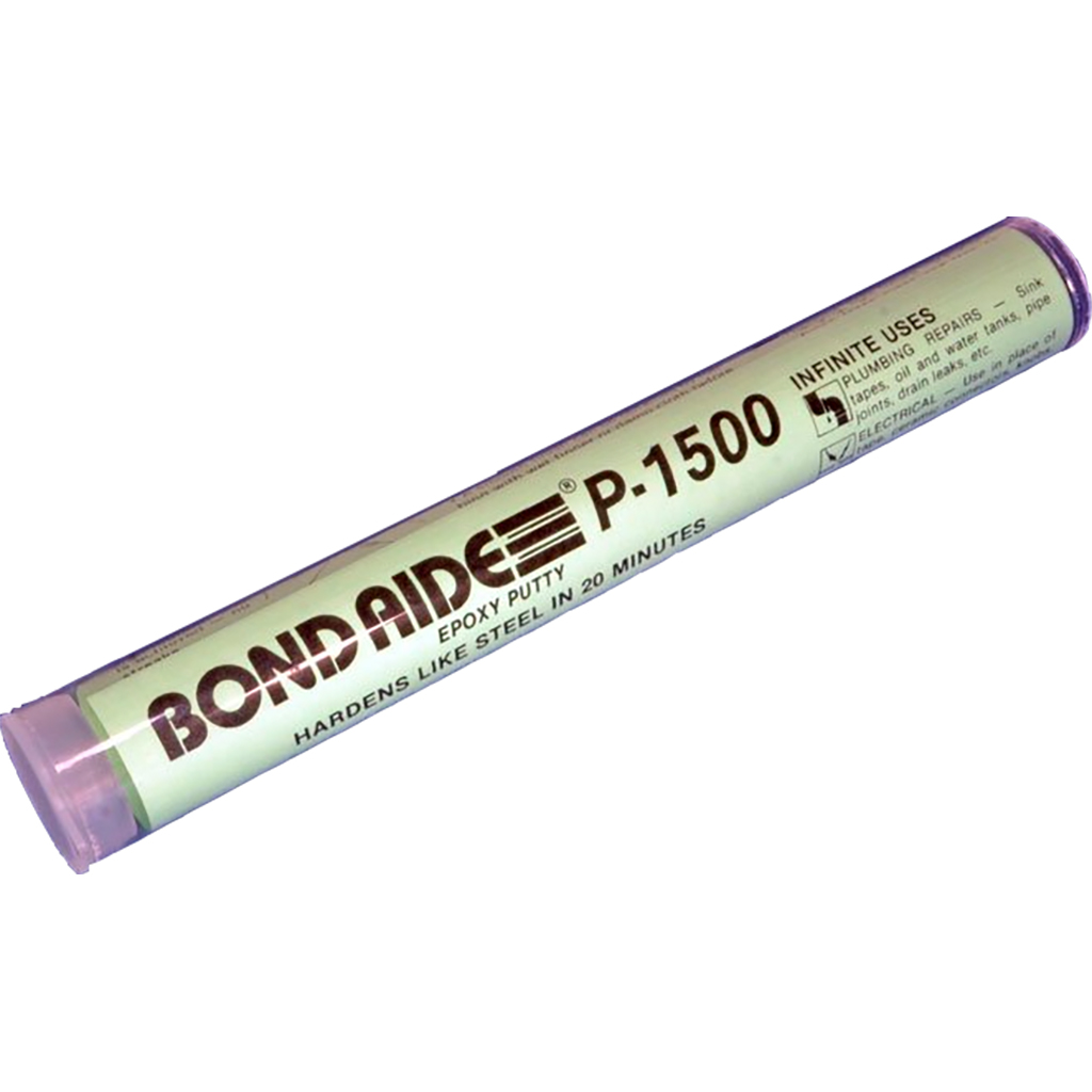 Non-toxic, two-part epoxy putty used as an adhesive bonding to metal, wood, glass, masonry, ceramics, most plastics, and underwater surfaces. Seals leaks in pipes, tanks, ductwork seams, and air conditioning coil. Fabricates new or used parts, repairs auto-body damage, replaces solder or welds, tape, and ceramic connectors. After one hour it can be drilled, tapped, filed, sanded, and painted over. Any unused portion keeps for over one year.