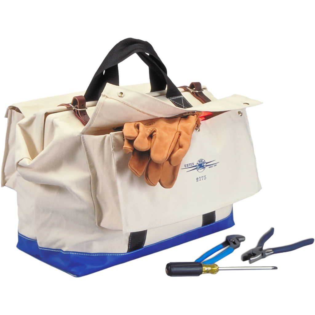 Coated nylon (blue) & 6 brass studs on the bottom for extra protection.