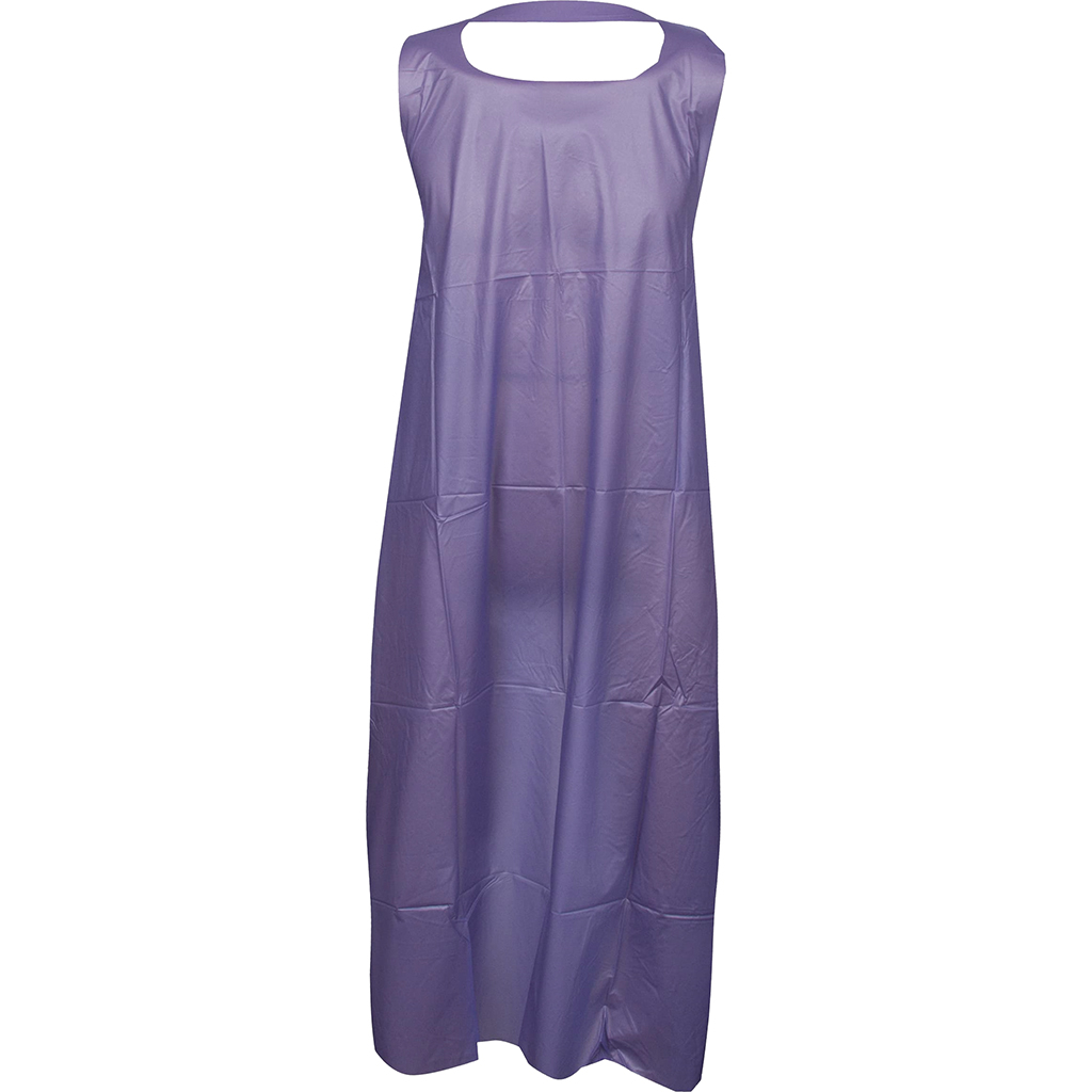 This blue, vinyl apron is constructed of 6 mil. vinyl and features die-cut edges.