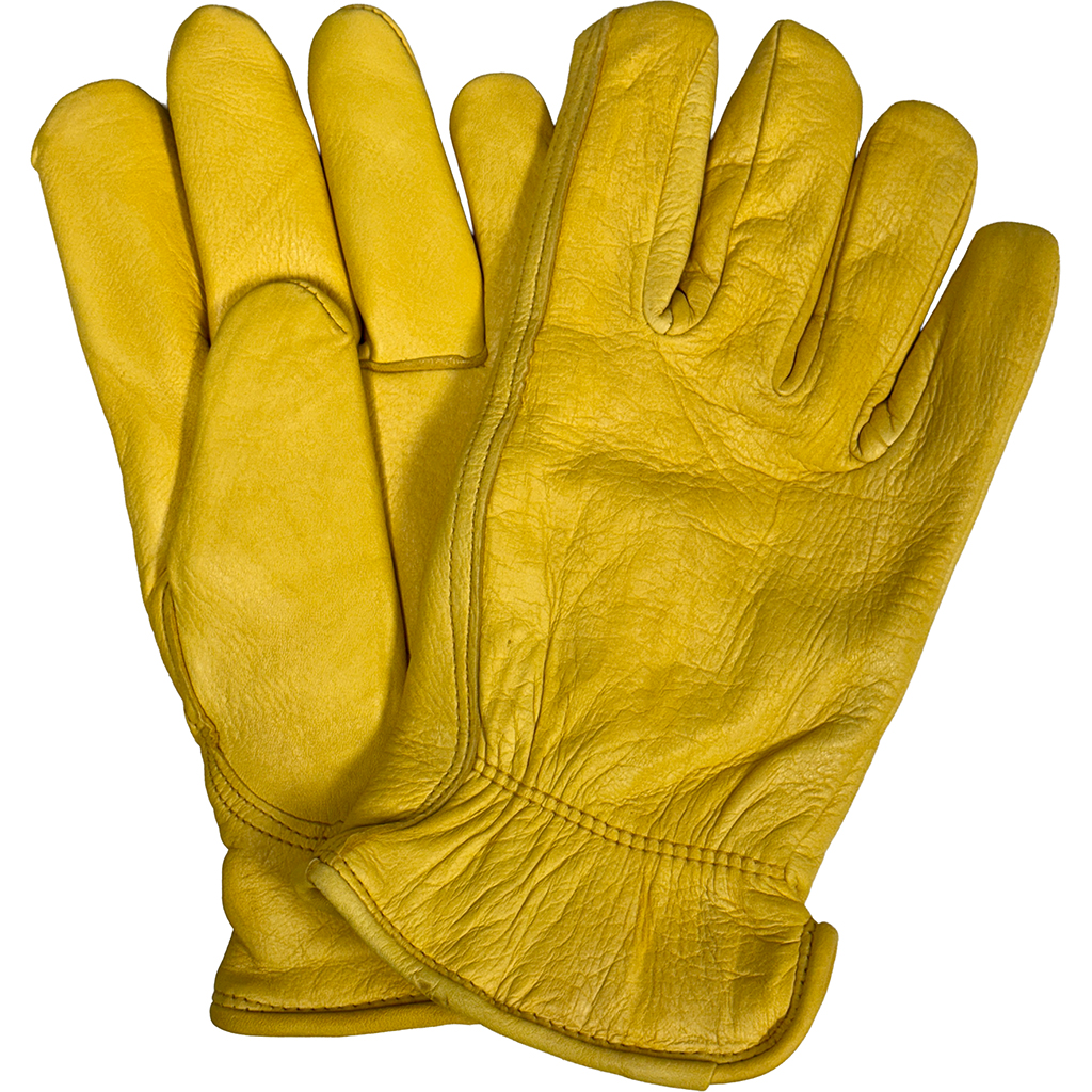 Ultra Thick. Select Shoulder Yellow Split Cowhide. Keystone Thumb. Shirred Elastic Back.