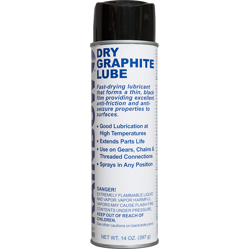 Dry graphite lubricant is a fast-drying lubricant that forms a thin, black film providing excellent anti-friction and anti-seizure properties to surfaces. USDA approved. Performs under extreme pressures and it is even effective under broad temperature range. It is inert to oils, water, and alkalies. Does not contain oil or water-based diluters. It minimizes dust and dirt pick-up so that the piece can be used immediately – no waiting. Use on bearings, tracts, conveyors, flat springs, hinges, die casting machines, oven parts, door locks, hydraulic pumps, ladle pins, heat risers, speedometer cables, and high speed end shafts. It may also be used as a parting compound on dies, sand cores, or match plates. All position valve allows can to be used in any position.