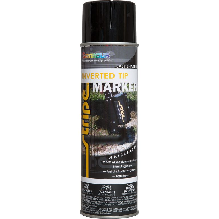 Excellent for use in marking construction areas, excavation sites, traffic safety, DOT sites, athletic sites, survey crews, utility line, buried cables, and much more. May be used on asphalt, concrete, gravel, dirt, and grass. Unique upside-down spray system for application versatility. High solids formula produces a highly visible coating. Lead-free, VOC compliant formula. Coating lasts approximately 14-60 days, depending on environmental conditions. Available in all APWA colors – please inquire.
