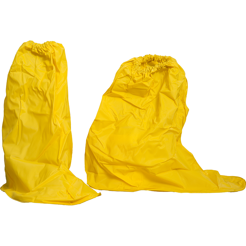 For personal protection when cleaning neutralized battery acid spills. Complies with OSHA guidelines. Kit includes 2 pair of acid-resistant boot covers with traction grip soles, 2 aprons, 2 splash suits, 4 pair of neoprene over rubber gloves, 2 face shields, 1 headgear, 2 splash-proof goggles, and 1 roll of 1,000′ caution tape. Packaged in a 5 gallon pail with a white lid and sure seal gasket.