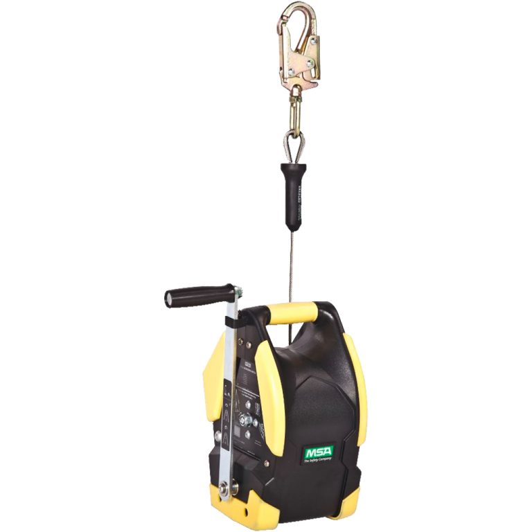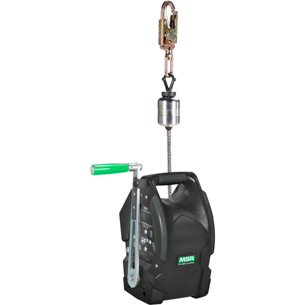 MSA Workman Winch with 95′ galvanized cable 400 lb capacity for personnel. Used with Tripod for confined space entry where a deep neck manhole requires additional cable length.