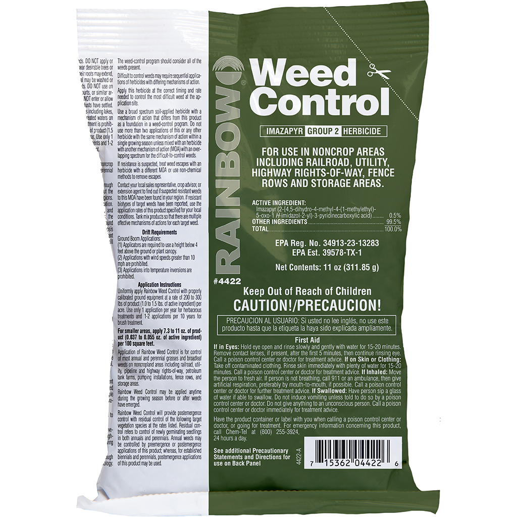 Clip corner of bag. Evenly apply one 11 oz bag of 4422 Weed Control per 10’ x 10’ area (100 sq. ft.). Do not over apply. More is not better.